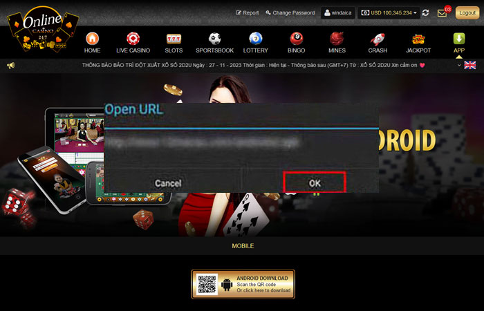 - ในการดาวน์โหลด แอพพลิเคชั่น เพียงคลิกปุ่มดาวน์โหลดที่เว็บไซต์ https://android1.alt-api.com/LiveCasino.apk บนอุปกรณ์มือถือแอนดรอยด์ของคุณ หรือสแกนที่ QR โค้ด. หากท่านมีบัญชีชื่อผู้เล่นอยู่ ท่านสามารถเข้าสู่ระบบโดยใช้รายละเอียดของบัญชีที่มีอยู่